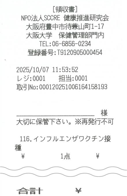 - 接種費用は3,500円(税込)です。当日支払いです。現金、クレジットカード、電子マネー決済が可能です。